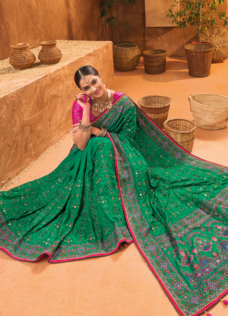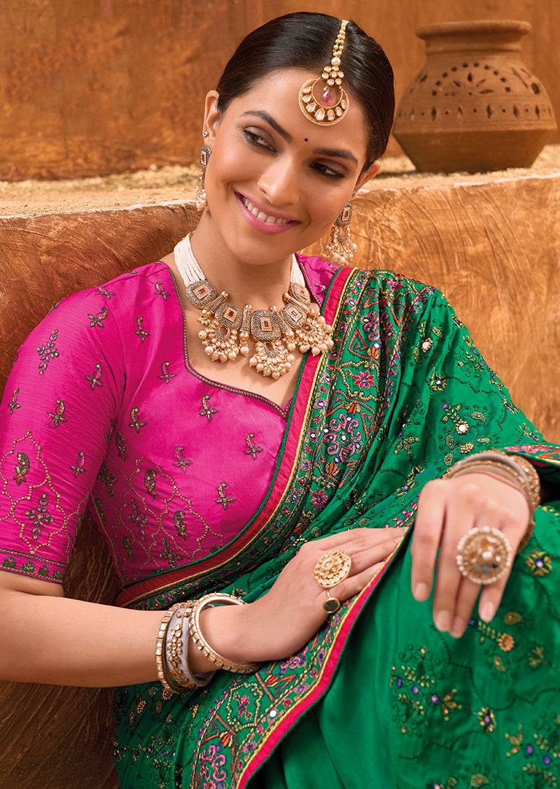 Saree Colour : Teal Green || Blouse Colour : Rani Pink