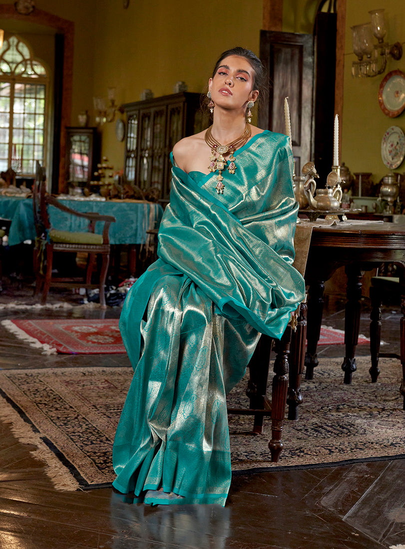 Saree Colour : Turquoise || Blouse Colour :-Turquoise