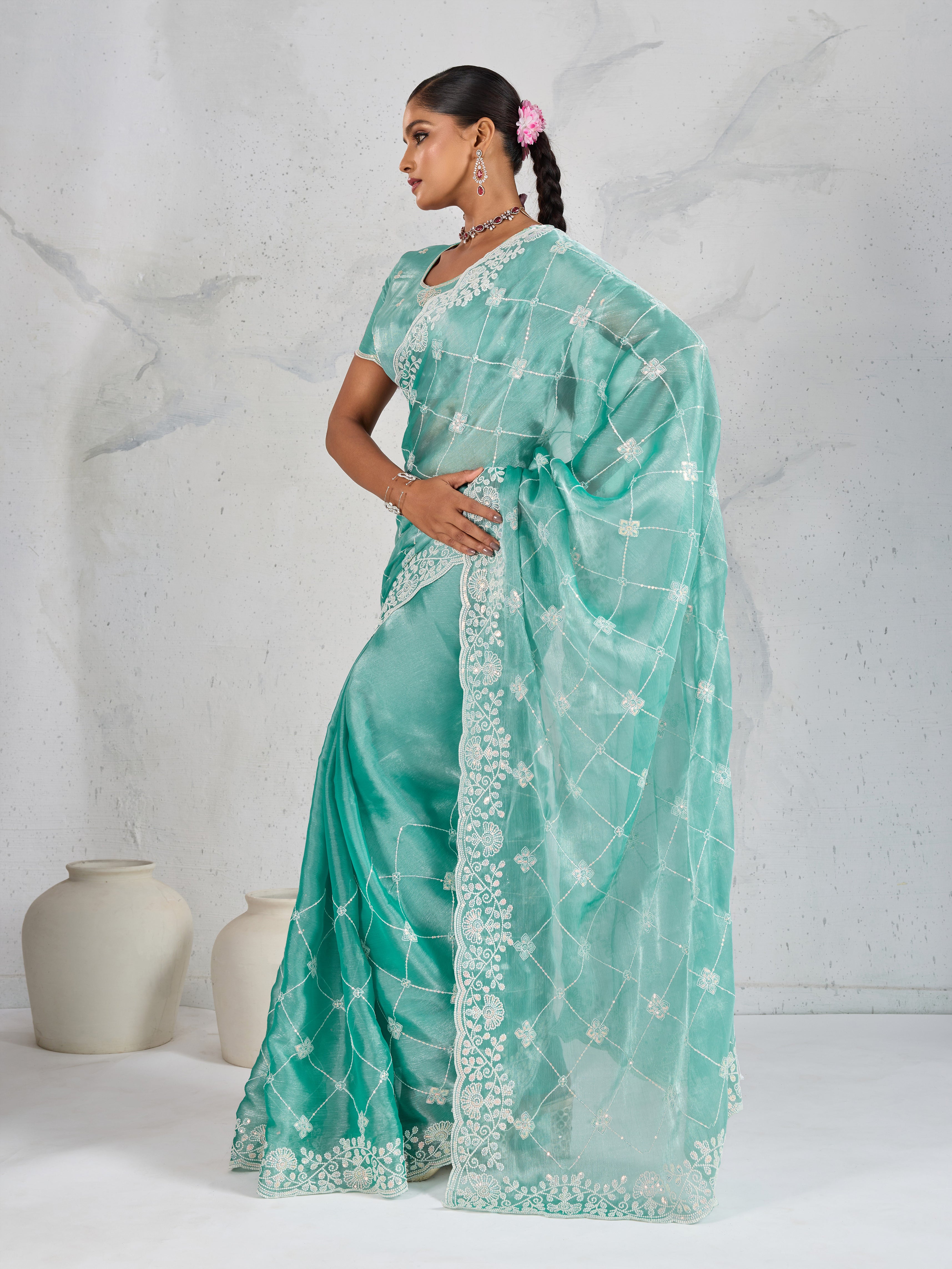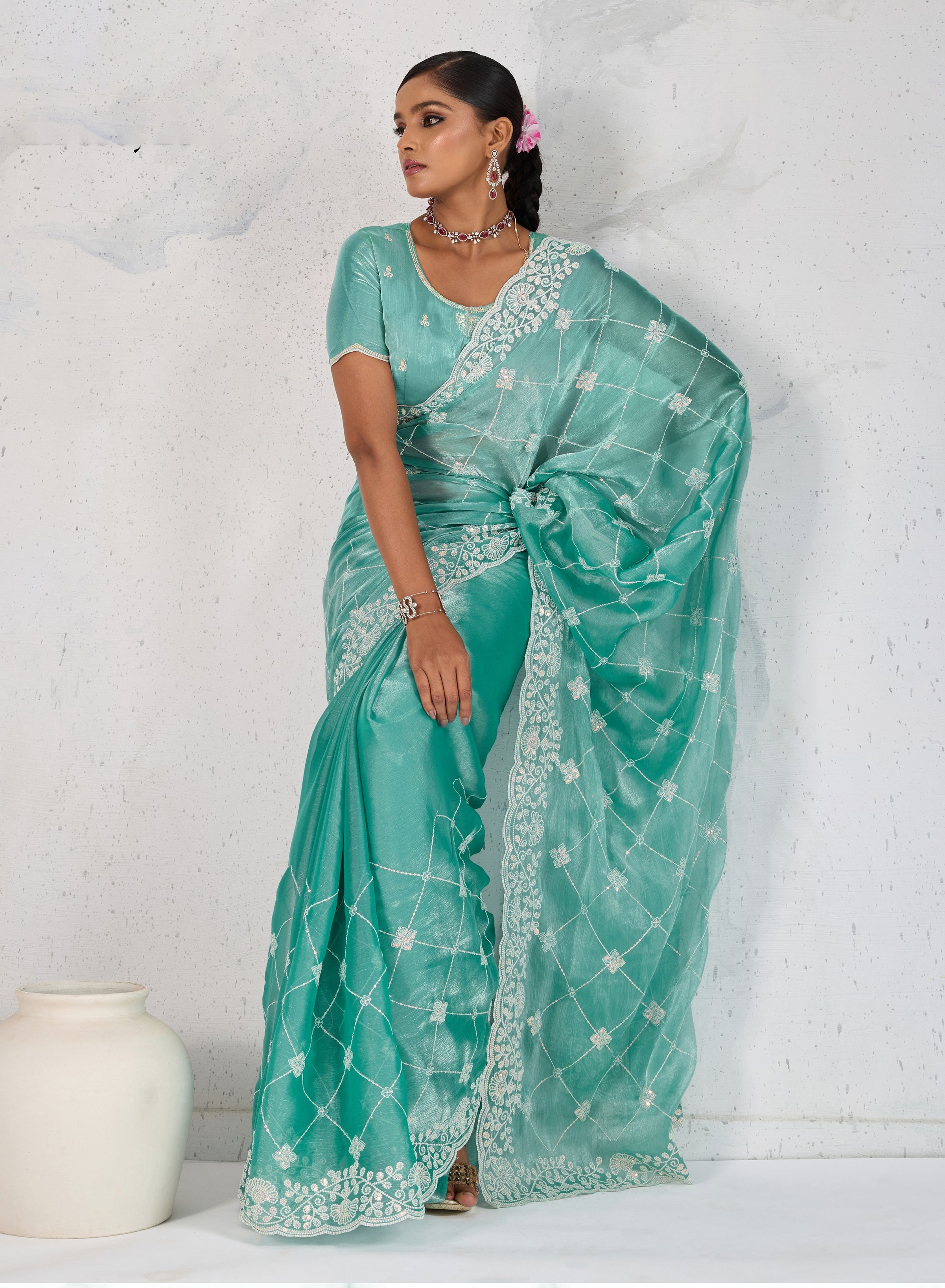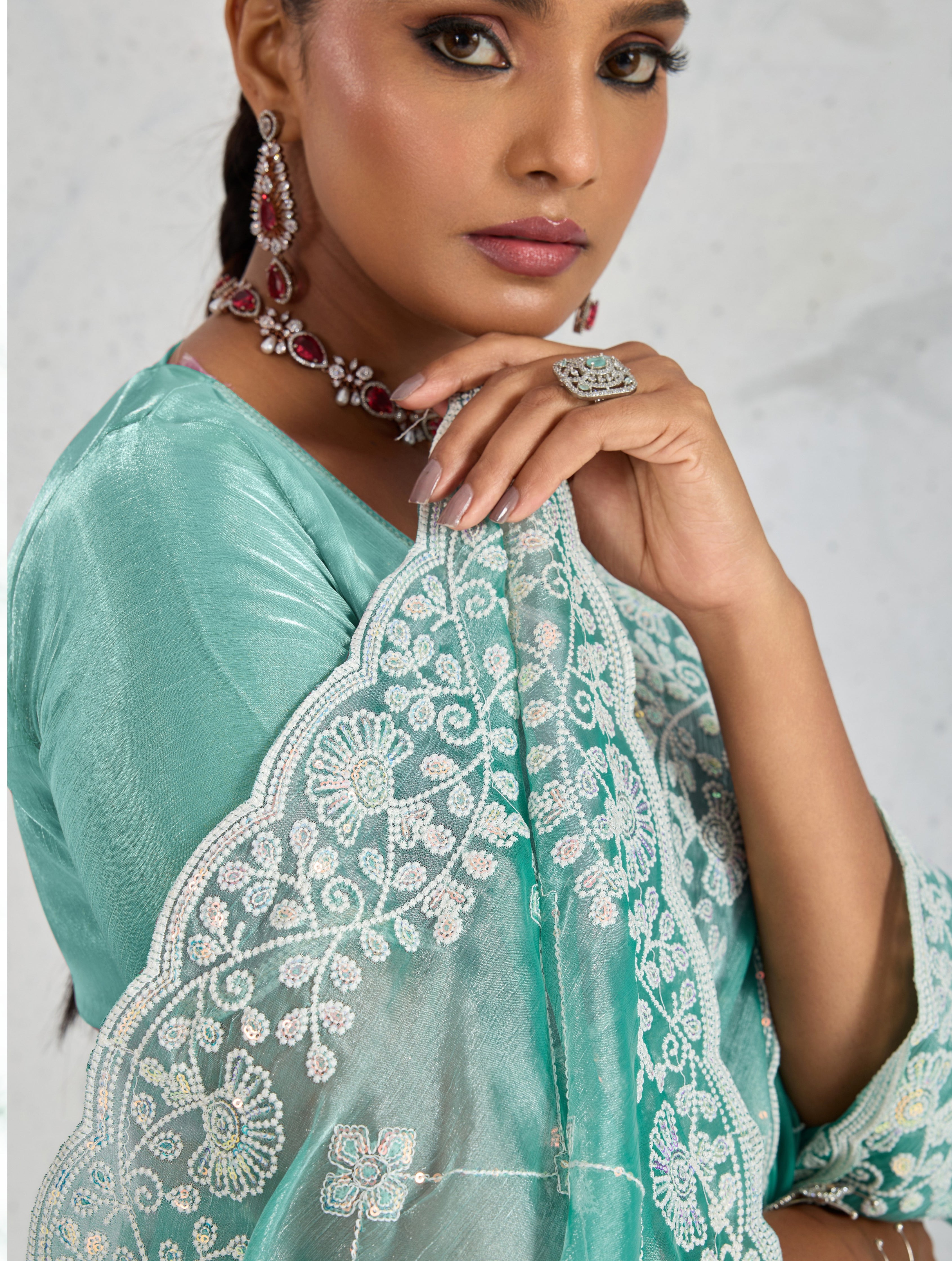 Saree Colour : Turquoise | Blouse Colour :-Turquoise