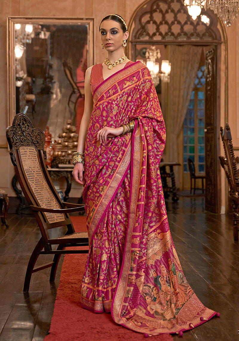 Step into timeless grandeur with this exquisitely woven maroon silk saree, a celebration of heritage and artistry. Traditional motifs paired with deep gold highlights create a royal aura. Ideal for weddings, cultural ceremonies, or festive evenings, this saree is a masterpiece of Indian craftsmanship.