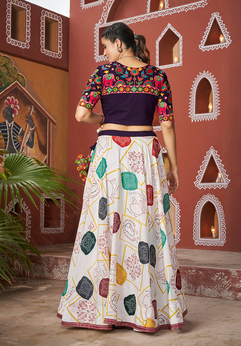 Colour : Lehenga :-White|| Blouse :-Dark Purple || Koti :- Dark Purple