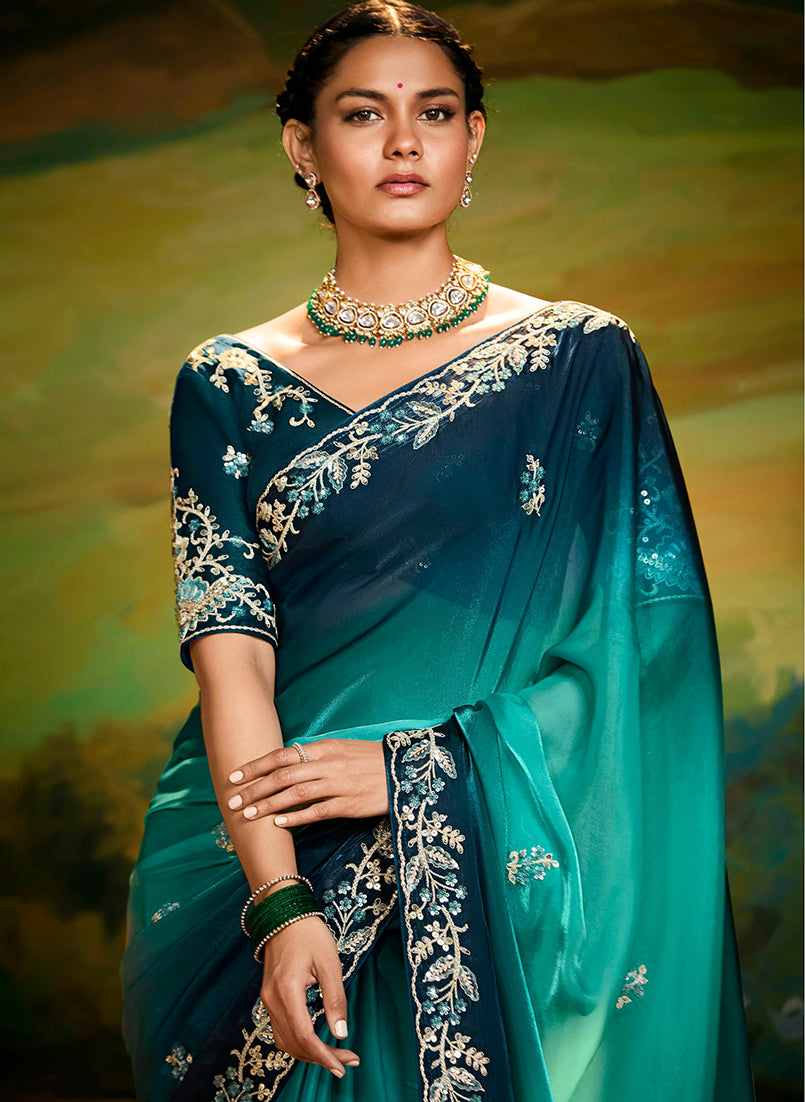 Saree Colour : Teal || Blouse Colour : Dark Teal