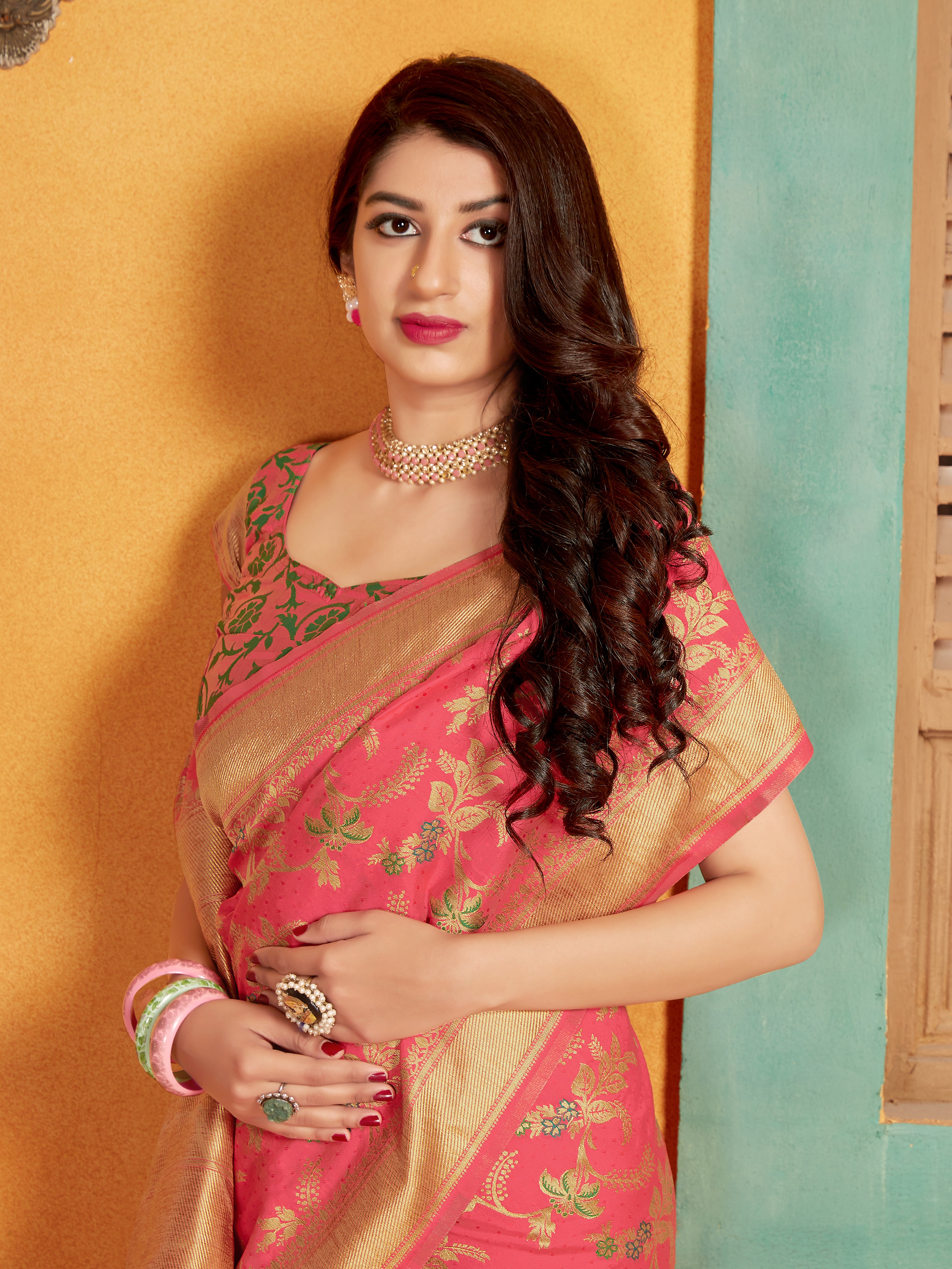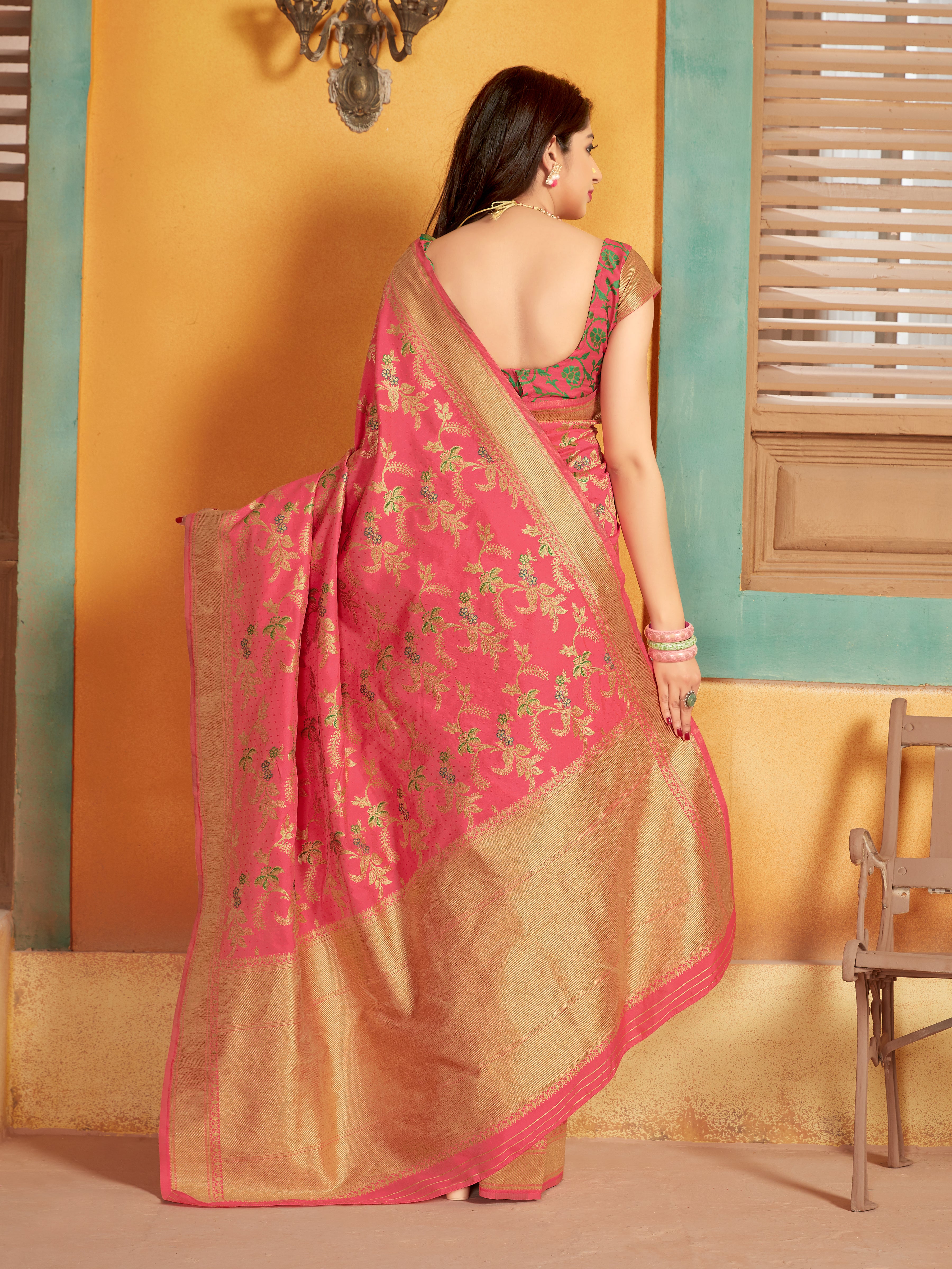 The history of Banarasi woven silk blend sarees is steeped in tradition and dates back several centuries. Banaras, also known as Varanasi, is one of the oldest cities in the world and has been a center of fine weaving and craftsmanship for centuries. Make a statement with our Banarasi Woven Silk Blend Saree, a masterpiece of craftsmanship and elegance. With its rich colors and intricate patterns, this saree is sure to capture attention and leave a lasting impression, making it the perfect choice for any special occasion. Each thread is woven with care and precision, creating a stunning ensemble that is sure to turn heads and make you feel like royalty. Crafted with intricate motifs and rich colors, this saree is a timeless classic that exudes sophistication and style, perfect for any occasion. Please note that the actual product color may vary slightly from what is displayed on your mobile screen, computer, or laptop screen, or in photographic lighting.