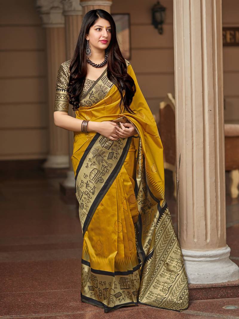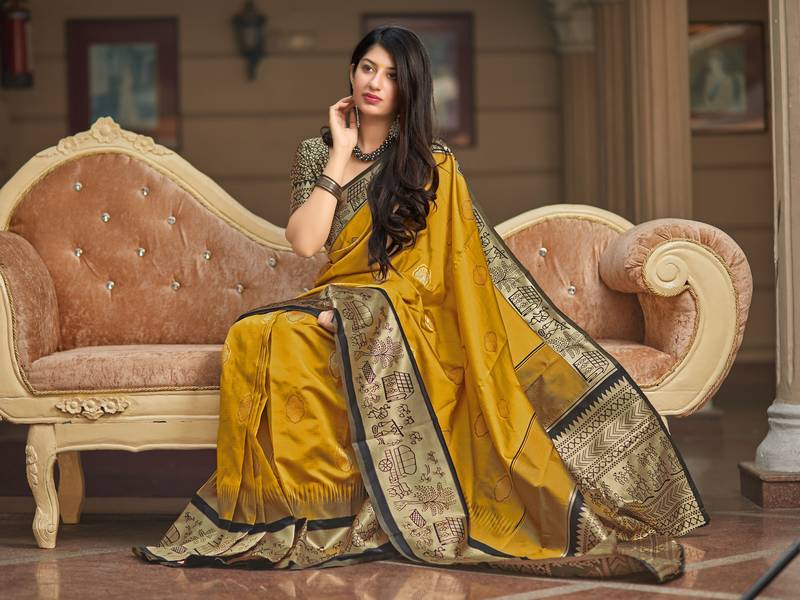 The mustard silk saree woven with golden threads, creates a striking contrast that captures attention effortlessly. From its intricate motifs inspired by nature to the delicate paisley patterns adorning the pallu, every aspect of this saree reflects the rich cultural heritage of Banaras. Wrap yourself in luxury and grace, and let your style speak volumes on every occasion. Draped with this masterpiece, you'll exude confidence and grace, whether you're attending a festive celebration or a formal event. Revel in the luxury of tradition and make a bold statement with this exquisite saree. Please note that the actual product color may vary slightly from what is displayed on your mobile screen, computer, or laptop screen, or in photographic lighting.