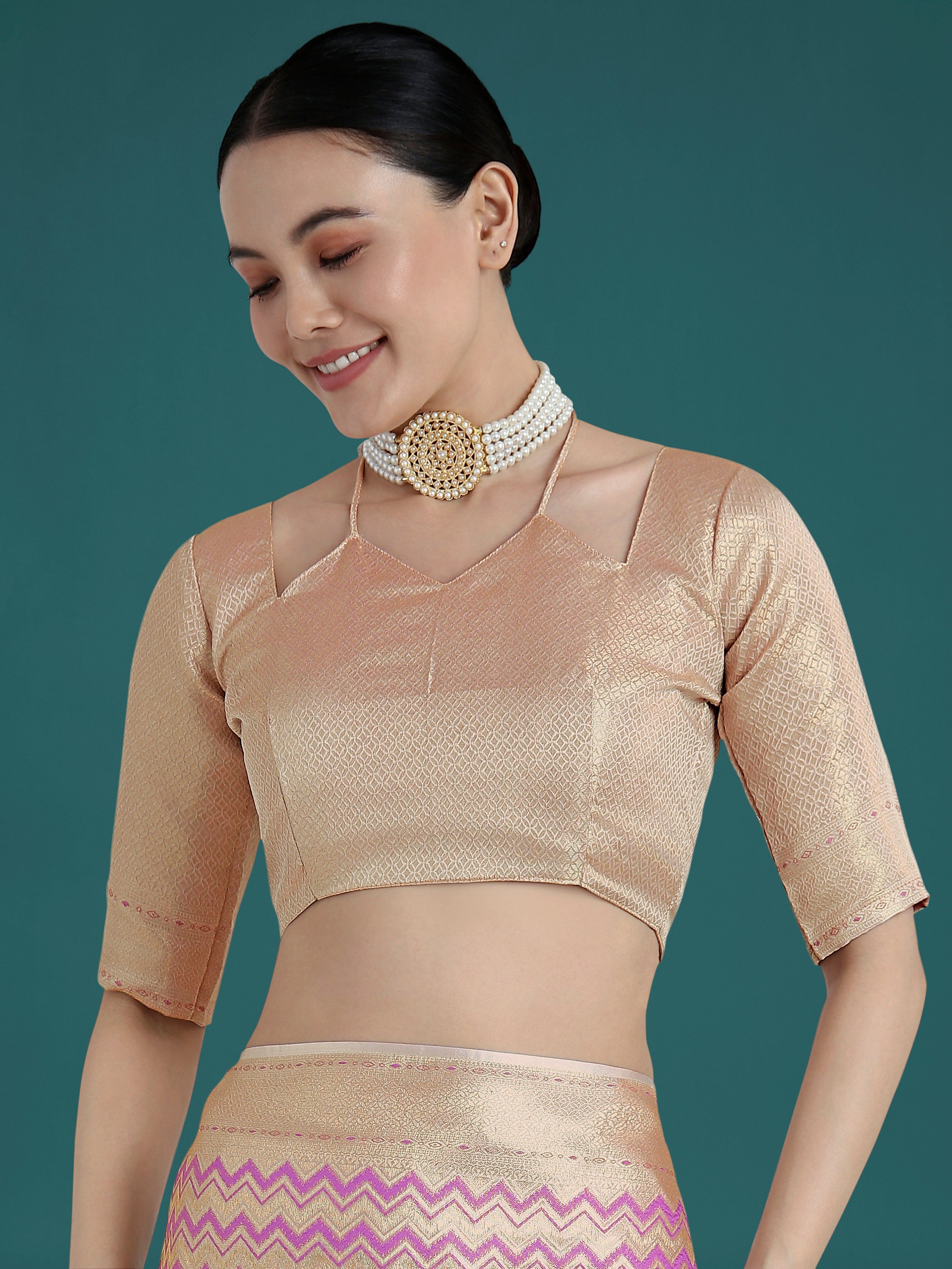 Saree Work : Zari Weaving (Woven) Leheriya pattern || Blouse: Weaving (Woven)