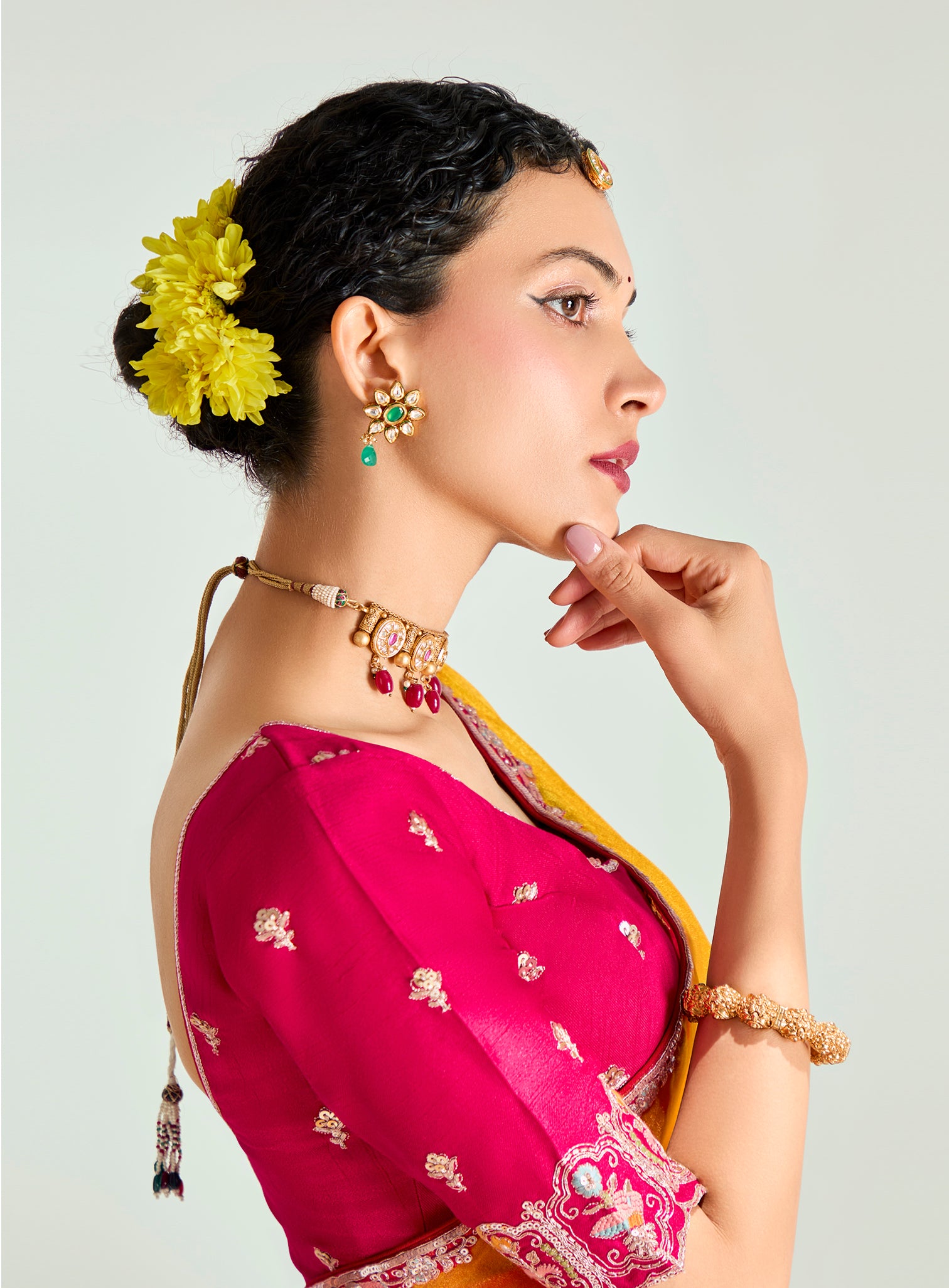 Saree Colour : Yellow | Blouse Colour : Rani Pink
