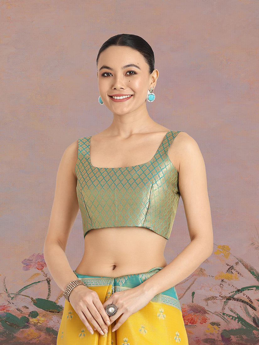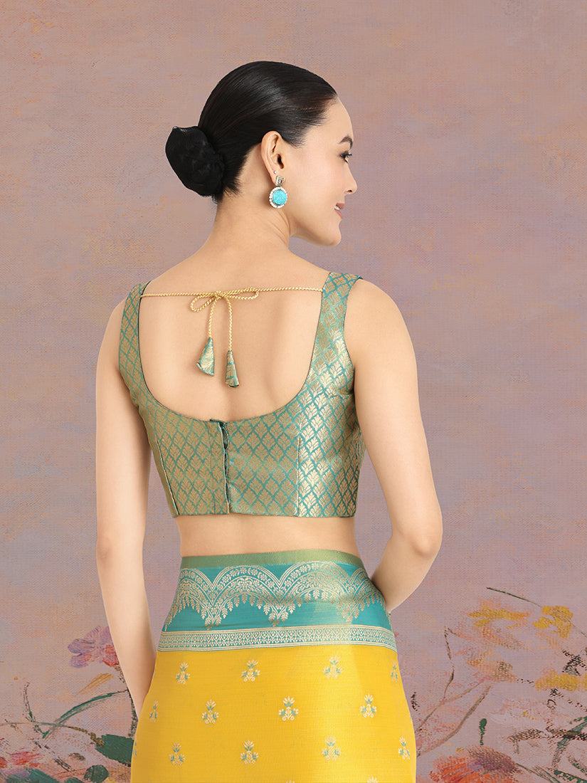 Monjolika Fashion Get going with this majestic and wonderful piece and make your dream attire look richer to your persona. We unfurl our the intricacy and exclusivity of our creations highlighted in this lovely Yellow Banarasi Tissue silk classic saree. The lovely weaving work throughout the attire is awe inspiring. Comes with matching blouse. (Slight variation in color, fabric & work is possible. Model images are only representative.)